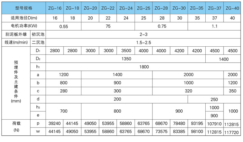 ZG型周边传动刮泥机适用于给排水工程中水厂或污水处理厂直径较大(Φ>15m)的辐流式(圆形)沉淀池的刮泥和撇渣。